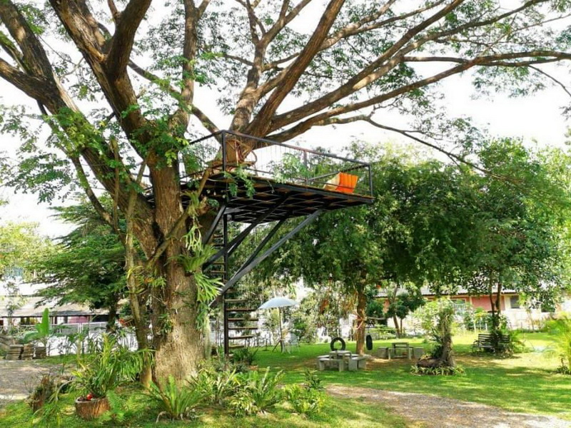 มีต้นจามจุรีขนาดใหญ่ พร้อมบ้านต้นไม้ เป็นจุดเด่นของพื้นที่มีที่จอดรถกว้างขวาง
